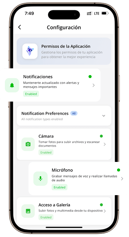 Configura exactamente qué alertas quieres recibir: nuevos mensajes, pagos y chats asignados. Solo lo que te corresponde.